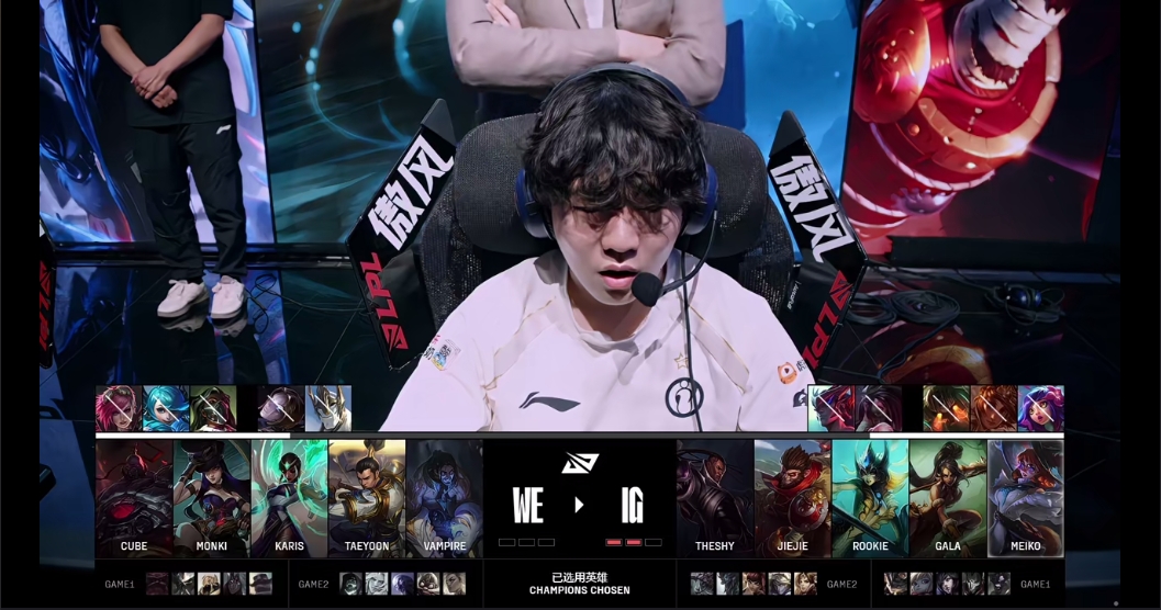 6月11日讯 LPL第二赛段WE对阵iG第三局,BP阶段iG直接在第四手为Theshy锁下上单豹女。